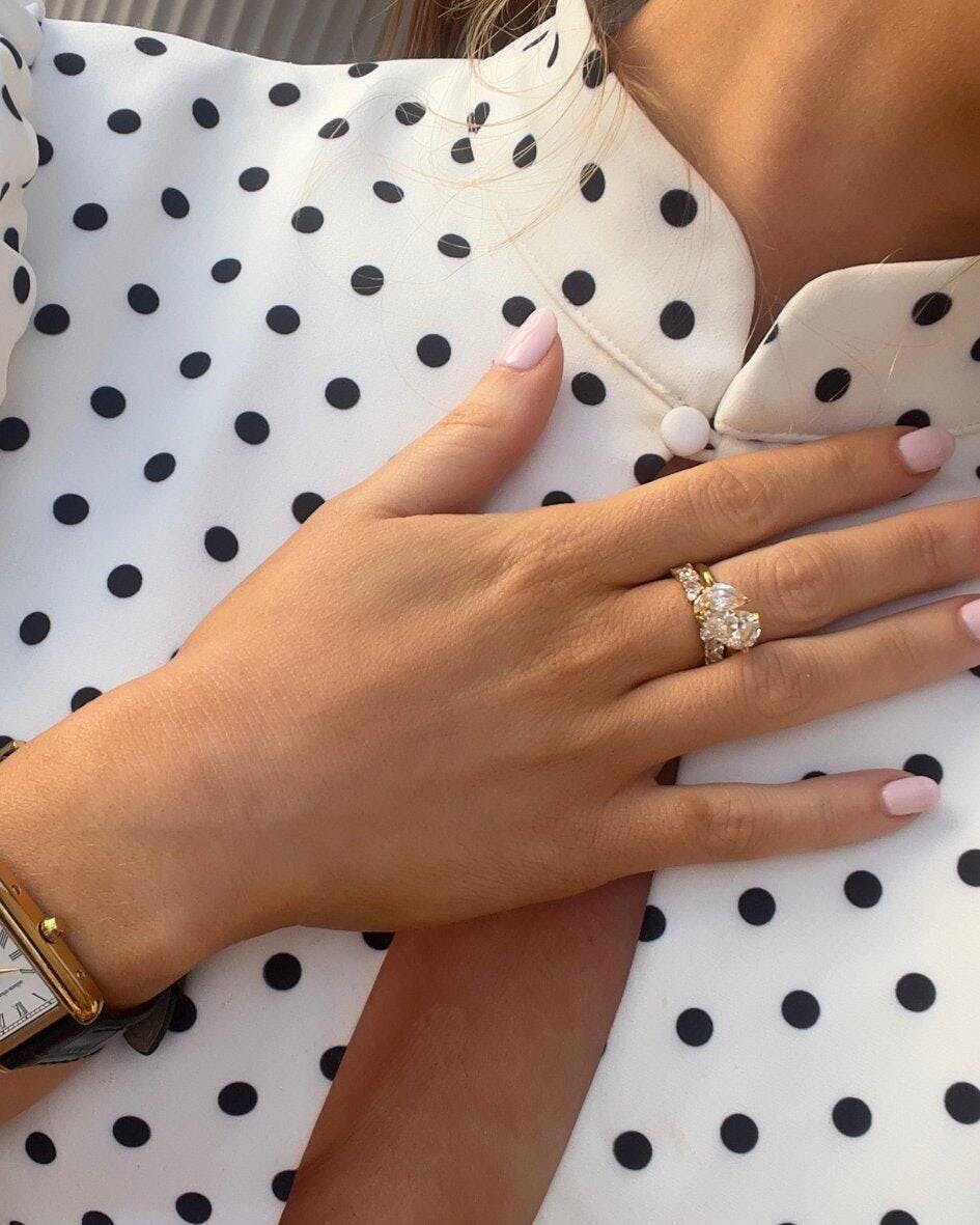 Conflict-free simulated diamonds, hand-set for a flawless finish.